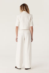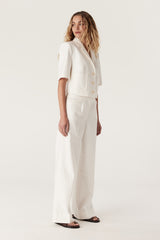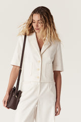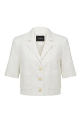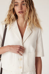 The Short Sleeve Blazer offers a regular fit in a cropped length, made from cotton linen suiting fabric for a smart casual look. It is fully lined and features a button closure and patch pockets on the front. Style with the Alison Pant.