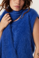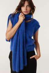 Brushed Pure Cashmere Wrap - Sapphire Blue