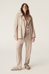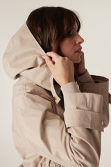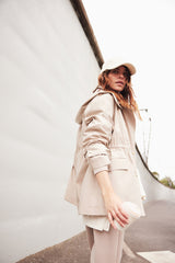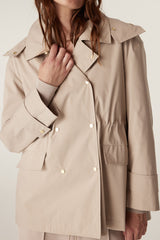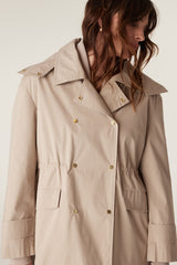 The Edgar Raincoat features a relaxed fit in a lightweight, showerproof Cotton blend fabric. Designed with a revere collar, double-breasted front and gold snap button closure. This luxe raincoat includes a detachable hood, sleeve tabs and an adjustable internal waist drawcord for versatility.