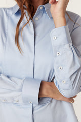 The Washington Shirt is a regular fit style crafted from soft-touch peached cotton poplin. Designed with a tuxedo bib detail, it features a concealed front button closure, buttoned cuffs with a feature tab detail, and side splits for ease of movement.