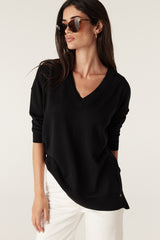 The Saxon Fine Merino Jumper is made from 100% Australian Woolmark Certified Merino Wool and offers a lightweight knit in a regular fit. Designed with a V-neckline and double collar trim detail, it features a high low hemline with side splits and a dropped shoulder for a relaxed look. Rib trims at the hem and cuffs provide a refined finish.