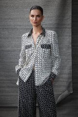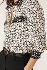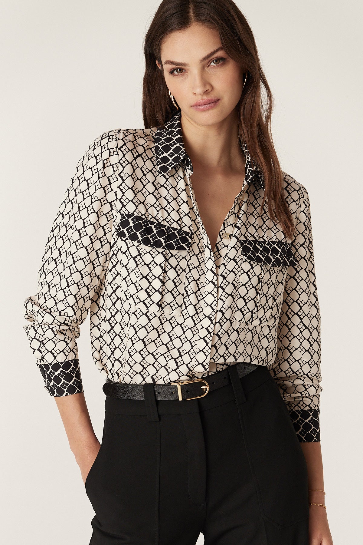 The Hamilton Blouse features a regular fit, crafted from a lightweight, breathable silk blend twill in an exclusive contrast print. Designed with a button through front and patch pockets, it has full length sleeves finished with buttoned cuffs. Wear with the Hamilton Pant for a statement look.
