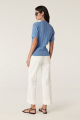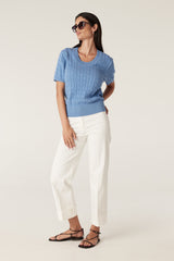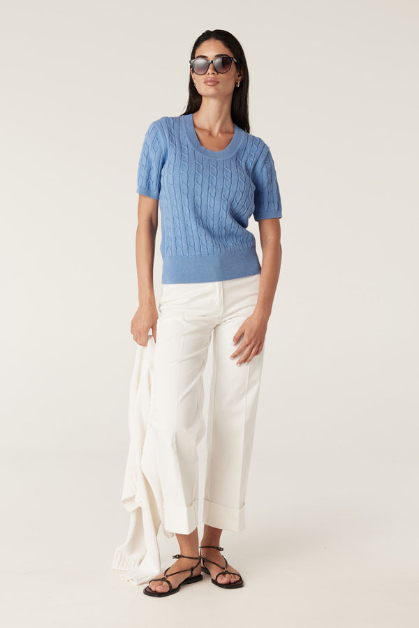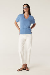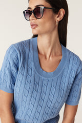 The Heritage Cotton Cable Tee is crafted in a soft, medium weight knit with a regular fit. Its scoop neckline pairs with cable stitching through the body and sleeves, while rib trims at the cuffs and hem add a polished touch.
