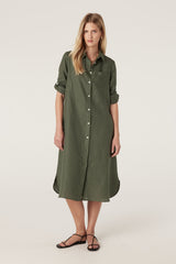 The Pure Linen Shirt Dress is a timeless best-seller crafted from a light and soft linen fabric. Detailed with an adjustable 3/4 length sleeve, a slight high low curved hem and relaxed fit.