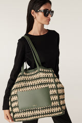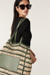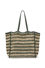 The Harvest Tote is the ideal accessory combining relaxed style with everyday practicality. Crafted from woven straw and finished with genuine leather trim, it features shoulder straps and a magnetic closure for ease. A front pocket, internal pocket, and solid base add function and structure—perfect for days on the go or warm-weather getaways.