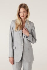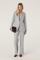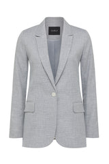 The Ivy Linen Blazer is crafted from a linen blend suiting fabric with a subtle pinstripe design. Fully lined for a smooth drape, it features a front button closure and functional front pockets. Button details at the cuff and structured shoulders complete the tailored look.