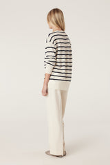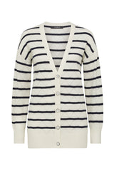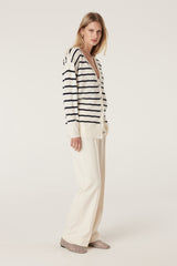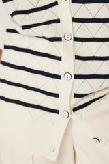 The Cashwool Cardigan is a regular fit, medium-weight knit featuring a stripe and pointelle detail throughout the body. Designed with a V-neckline and front button placket, it has a dropped shoulder and is finished with rib trim at the cuffs and hem.