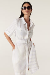 Sail Linen Dress - Blue Pinstripe