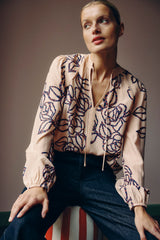 Made from a lightweight, breathable silk blend, the Bloom Blouse features a relaxed fit with a stand collar and tie detail. Designed with full length sleeves finished with elasticated cuffs, this blouse has an effortless drape through the body.