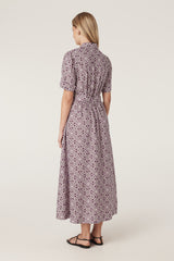 The Nova Dress is crafted from a lightweight, breathable silk blend twill in an exclusive print. Designed in a regular fit with an elastic at the back waist, it features a button-through front, a matching belt with a D-ring buckle, and side pockets.