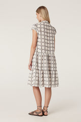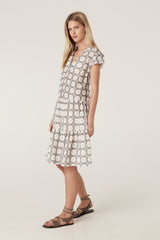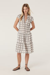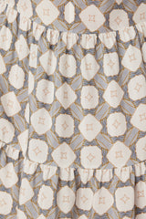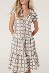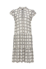 The Sana Dress is crafted from a lightweight, breathable silk blend in an exclusive print. Designed in a relaxed fit, it features a subtle neck frill, double layered frill sleeves, and a tiered skirt, finished with a side invisible zip closure.