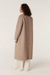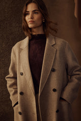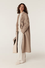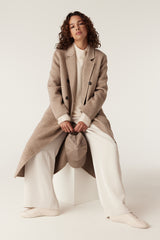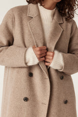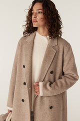 The Ainsley Coat is designed in a relaxed fit with a wool blend herringbone fabric. Featuring a lapel collar and double breasted button closure, it is finished with functional welt pockets. The body is unlined for a lighter feel, with fully lined sleeves.