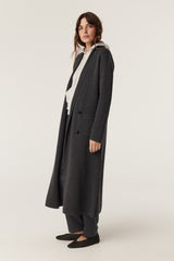The Ava Merino Knit Coat is a regular fit, medium-weight knit made from 100% wool. Designed with a longline silhouette, it features a double-breasted opening and hip patch pockets.