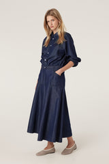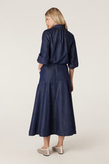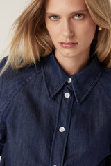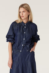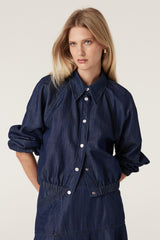 The Bay Shirt is a regular fit style crafted from a medium-weight lyocell blend. Designed with a front press stud closure and raglan sleeves, it features elasticated cuffs and a gathered hem band for a soft, blouson effect. Pair with the matching Bay Skirt for a coordinated look.