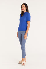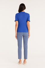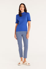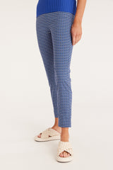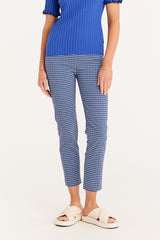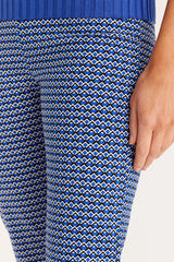 The Bell Geo Pant features a striking geometric blue print for a statement look. Crafted with an elastic waistband and stretch fabric for all-day comfort, these pants will become a treasured staple in your wardrobe.