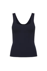 The Crepe Ribbed Knit Tank offers a slim fit in a lightweight knit, ideal for layering or wearing alone. It features a square neckline and bust line detail for a flattering shape, completed with a self-start hem.