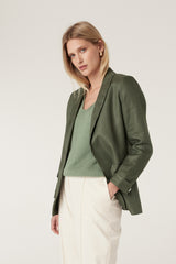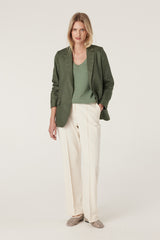 The Cruz Linen Blazer is a relaxed fit, open-front style crafted from pure linen. Designed with functional front pockets and a back hem vent, it features folded cuffs with functional buttons and is fully lined.