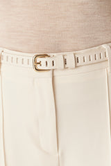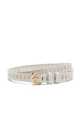 The Fay Leather Belt is crafted from genuine leather with a clean, minimal finish. Designed with multiple eyelets for adjustable sizing, it is finished with gold hardware for a refined touch.