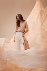 The Flax Scoop Top is a regular fit, medium-weight knit made from traceable yarn. Designed with a scoop neckline and dropped shoulders, it is finished with rib trim at the neck, armholes, and hem.