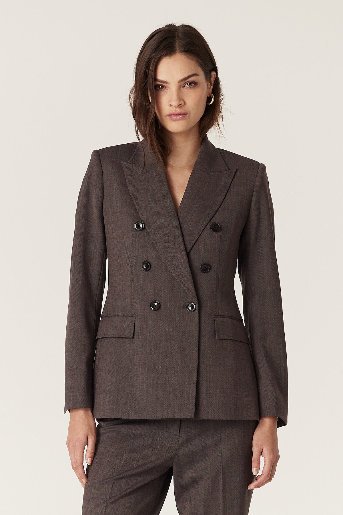 Crafted from a European wool blend with stretch and a subtle herringbone weave, the fabric reflects premium craftsmanship. Wear with the Fletcher Wool Pant for an elevated look.