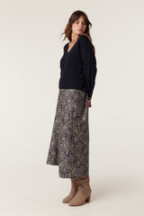 The Grace Skirt is a bias-cut style featuring an exclusive print. Designed with a side invisible zip closure and a partially elasticated back waist for a comfortable fit.