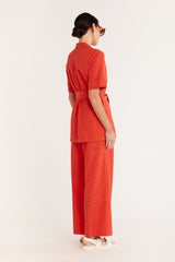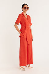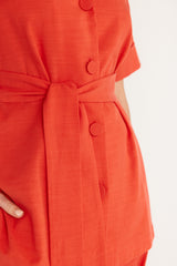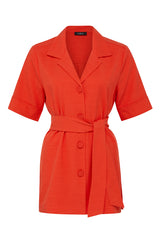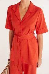 The Island Tie Shirt has a regular fit silhouette with a revere collar, front button closure, and fabric covered buttons for an elevated look. Crafted from a natural breathable fibre blend of tencel, cupro and cotton and finished with a tie belt. You'll love the detail this piece adds to your wardrobe.