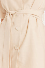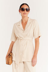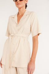 The Island Shirt has a regular fit silhouette with a revere collar, front button closure, and fabric covered buttons for an elevated look. Crafted from a natural breathable fibre blend of tencel, cupro and cotton and finished with a tie belt. You'll love the detail this piece adds to your wardrobe.