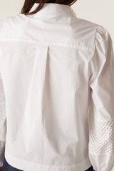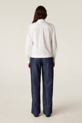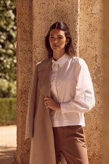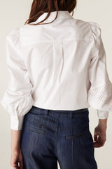 The Isobel Embroidered Shirt features a relaxed fit in stretch Cotton poplin. The embroidered sleeve detail adds a subtle touch of texture, while the concealed front button closure and buttoned cuffs keep the design refined. Finished with a straight hemline and side splits.