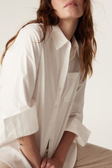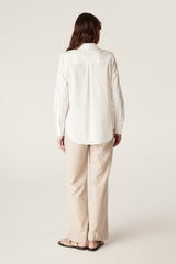 The Jamie Shirt offers a regular fit in stretch cotton fabric, combining comfort and versatility. It features a classic shirt collar, button-through front, and a chest pocket. A back pleat and side body button openings add subtle detail to this timeless design.