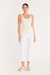 Proudly made in Australia, the Liv Summer Pant in White is crafted from a stretch Bengaline fabric. This pant is a cropped style featuring an elastic flat waist and hem side splits. This signature Cable Melbourne style is a crowd favourite by virtue of versatility and ease of wear.