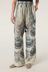 The Maxime Pant is a relaxed fit style crafted from a lightweight, breathable silk blend fabric featuring an exclusive print. Designed with a fully elasticated waistband, belt loops, and a matching waist tie with tassels, it is finished with side pockets.
