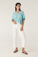 The Pure Cashmere Relaxed Top offers a comfortable fit in a lightweight knit, perfect for effortless styling. It features a V-neckline, a centre back exposed seam detail and a subtle hem split.