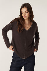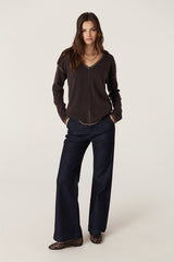 Designed in a relaxed fit with a medium weight knit, this soft pure cashmere jumper features a V-neckline and exposed seam detailing with contrast stitching through the front and sleeves.