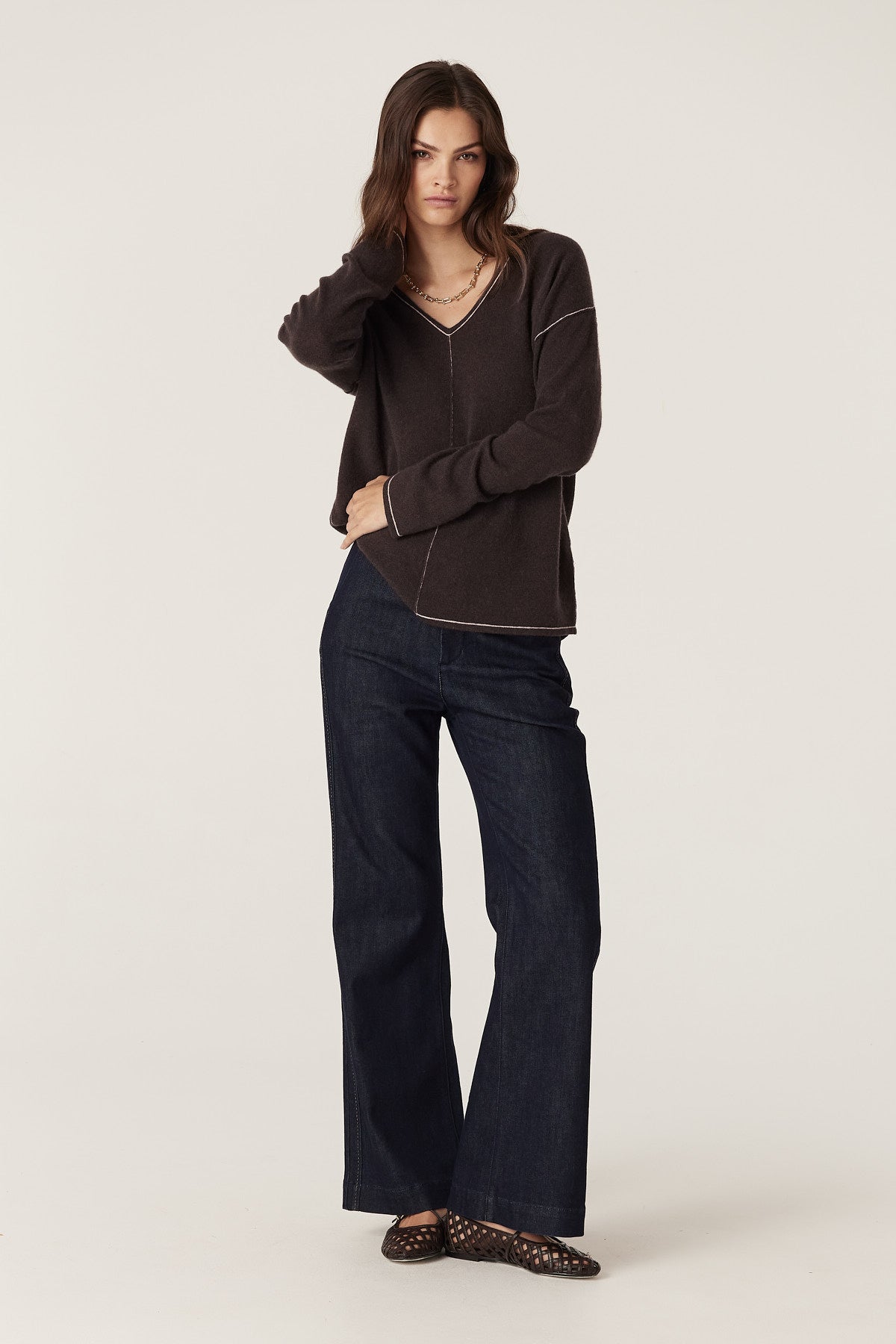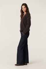 Pure Cashmere V Jumper - Chocolate