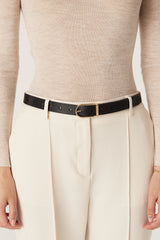The Reversible Belt offers classic versatility with two colour options, Black and Green. Crafted from genuine leather, it features a slim 2.5 cm width and a gold hardware buckle.
