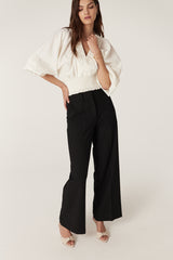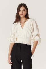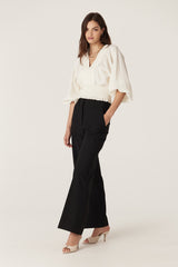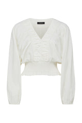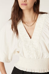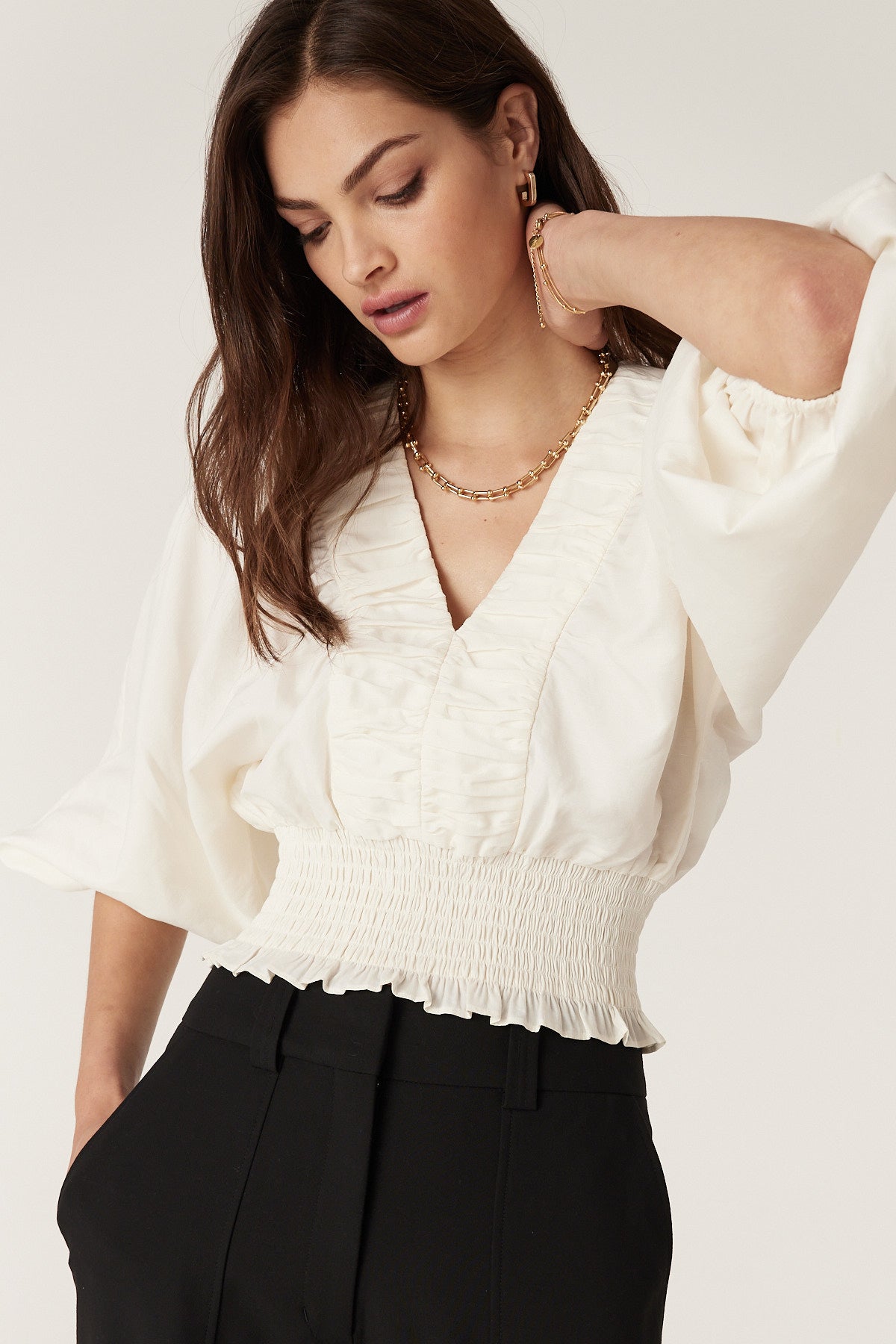 Made from a breathable linen viscose blend, the Sasha Blouse features a relaxed fit with a V-neckline and ruched detailing. Designed with wide batwing sleeves finished with elasticated cuffs, it has a softly shirred waist for comfortable shape through the body.
