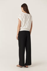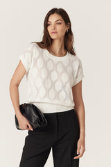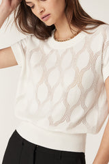 Silk Tencel Wave Knit Top - White