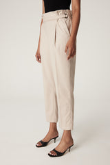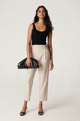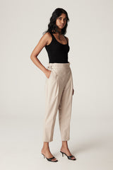 The Stockholm Cropped Pant offers a relaxed straight-leg fit with adjustable waist tabs and front slant pockets. Crafted in a mid-weight stretch fabric, its 7/8 length and pressed front crease detail add a modern edge.