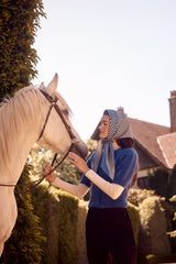 The Swirl Scarf features an exclusive print on a lightweight, breathable Silk blend. The blue and cream abstract design adds a modern touch to any outfit.