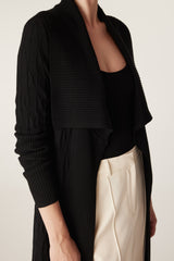 The Beaumont Merino Cardigan is a timeless addition to our Heritage 365 collection. Crafted from 100% Australian Woolmark Certified Merino Wool, this longline cardigan features a regular fit and a medium weight knit. Cable stitch detailing runs throughout, complemented by deep rib accents on the sleeves and a ribbed collar.