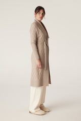 The Victoria Merino Cardigan is a versatile piece from our Heritage 365 collection. Made from 100% Australian Woolmark Certified Merino Wool, this mid length cardigan features a medium weight knit with diamond cable stitching throughout. Designed with a Milano collar neckline and deep ribbed sleeves, it includes a detachable belt.