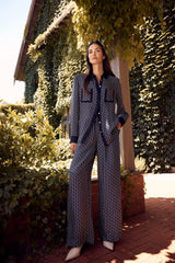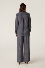 The Willa Wide Leg Pant is crafted from a lightweight, breathable Silk blend with an exclusive print. It features a relaxed fit, fully elasticated waistband, side pockets and a contrast navy fabric belt. Pair it with the matching Willa Blouse.